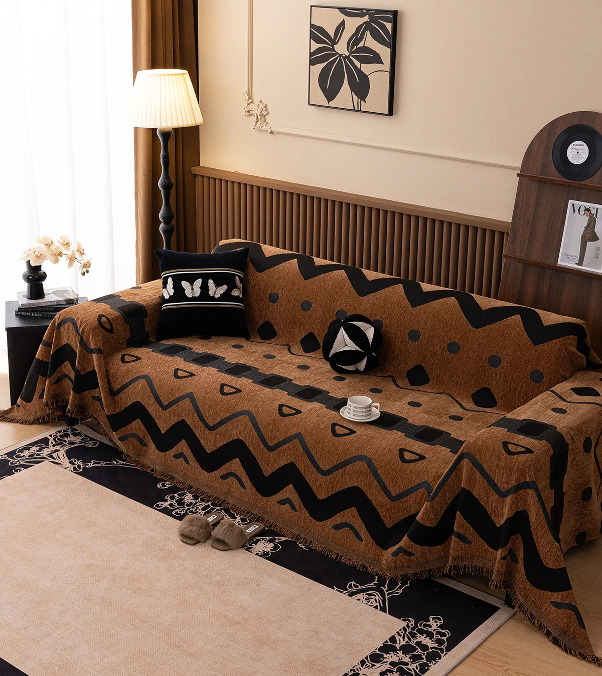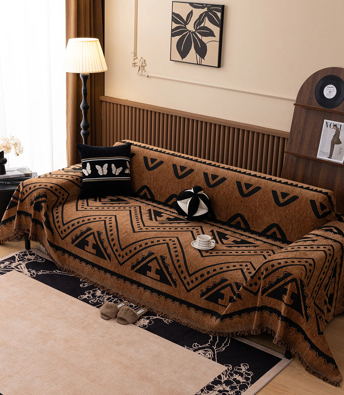 Apportez une touche rétro et chaleureuse à votre intérieur avec notre couverture de canapé imprimée à motifs géométriques. Épaissie pour un confort optimal, elle est idéale pour les moments de détente, les siestes sous la climatisation ou comme jeté décoratif.