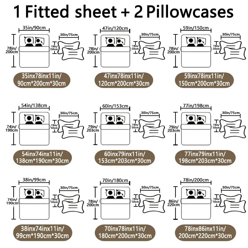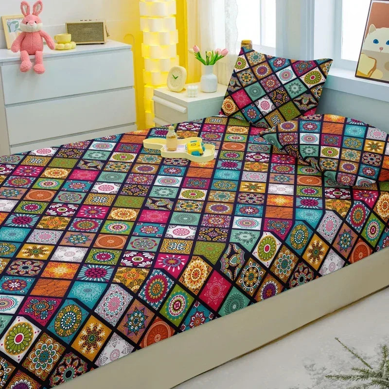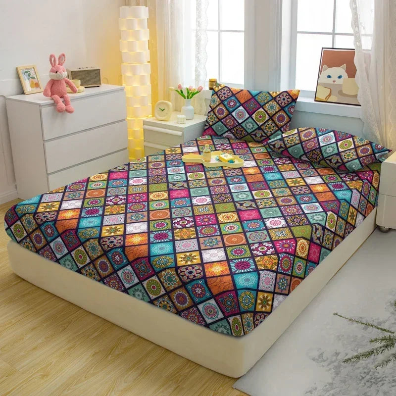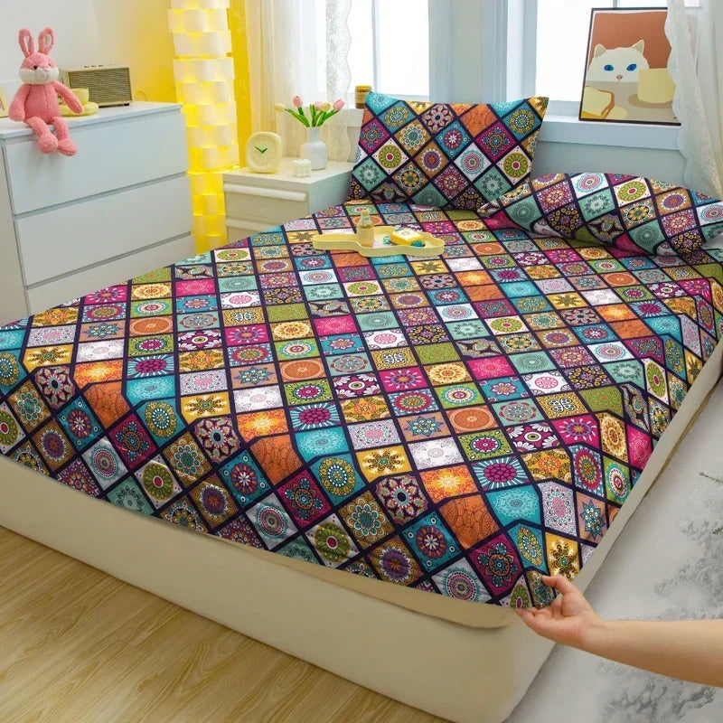 Ensemble drap-housse 3 pièces motif bohème moderne – Literie imprimée chic et naturelle pour chambre à coucher