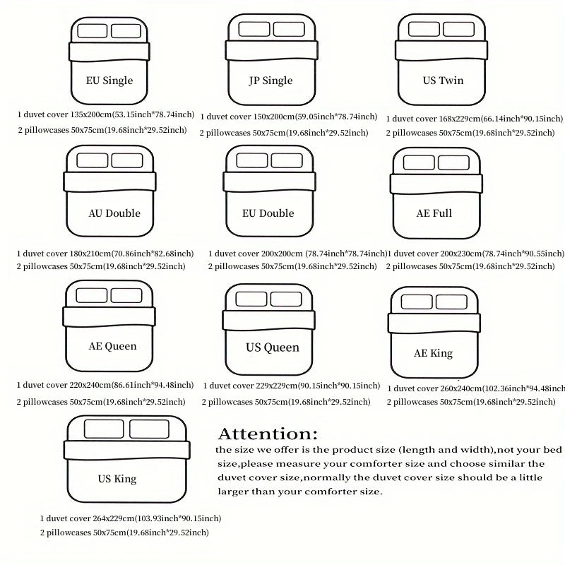- Ensemble 3 pièces : 1 housse de couette + 2 taies d’oreiller assorties.