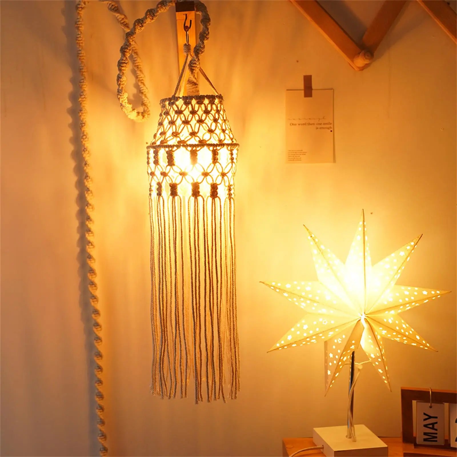 Apportez une note poétique et artisanale à votre intérieur grâce à cet abat-jour en macramé, entièrement réalisé à la main. Son design bohème et épuré en coton tressé offre une ambiance douce et chaleureuse, idéale pour une lampe de chevet, un plafonnier ou la décoration d’un hôtel au charme naturel.