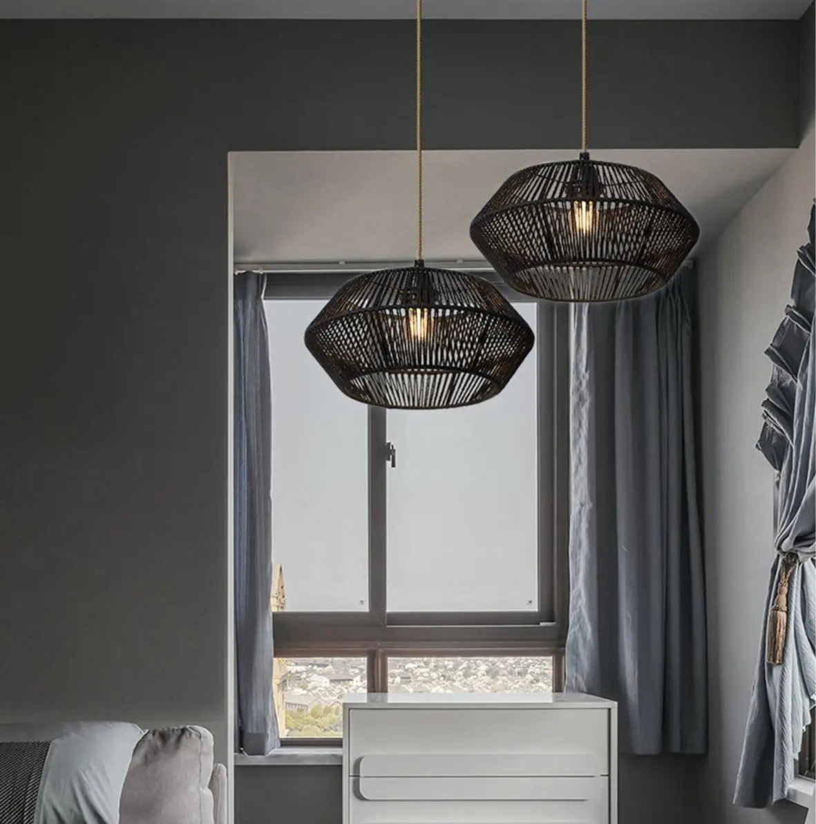 Transformez votre espace avec ce lustre artisanal en corde de papier, une pièce de caractère qui allie élégance naturelle et créativité haut de gamme. Son abat-jour tissé à la main crée une lumière douce et chaleureuse, parfaite pour des environnements tels que les balcons, restaurants, hôtels ou tout espace à la recherche d’un éclairage d’ambiance raffiné.