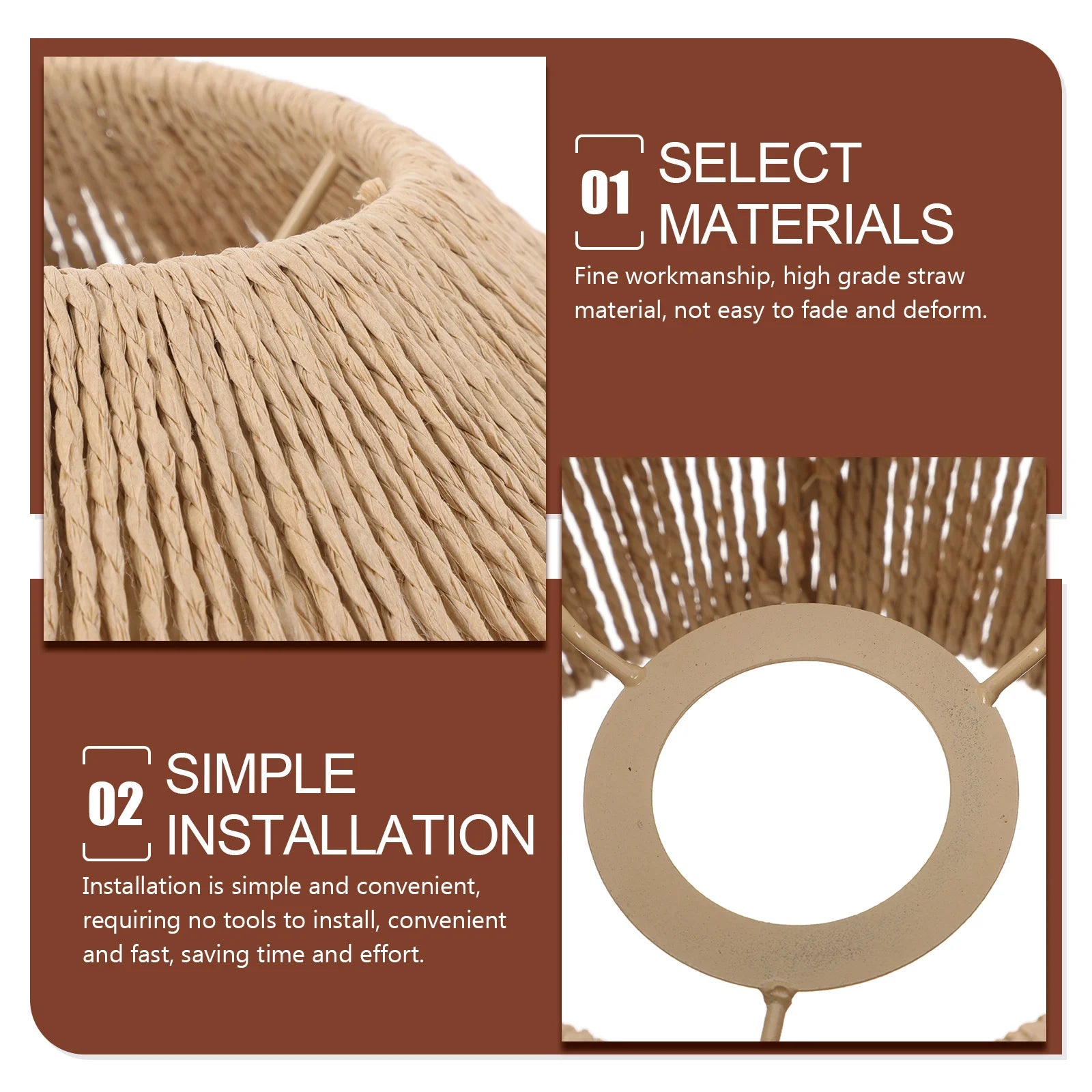 - Matériaux : Rotin naturel & papier tissé