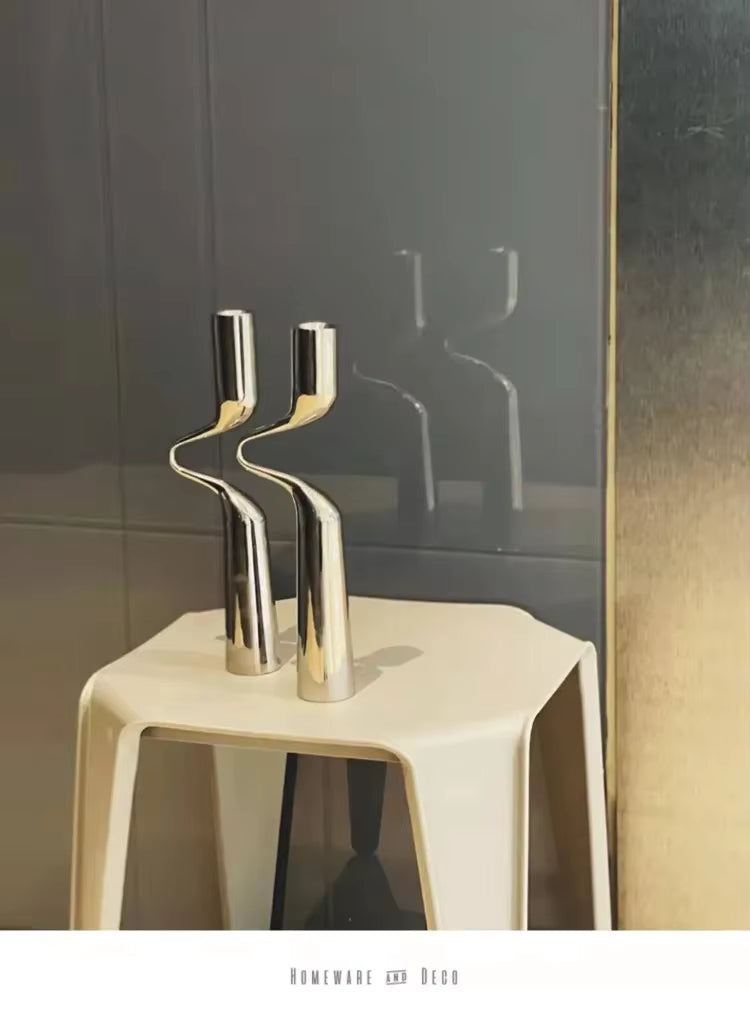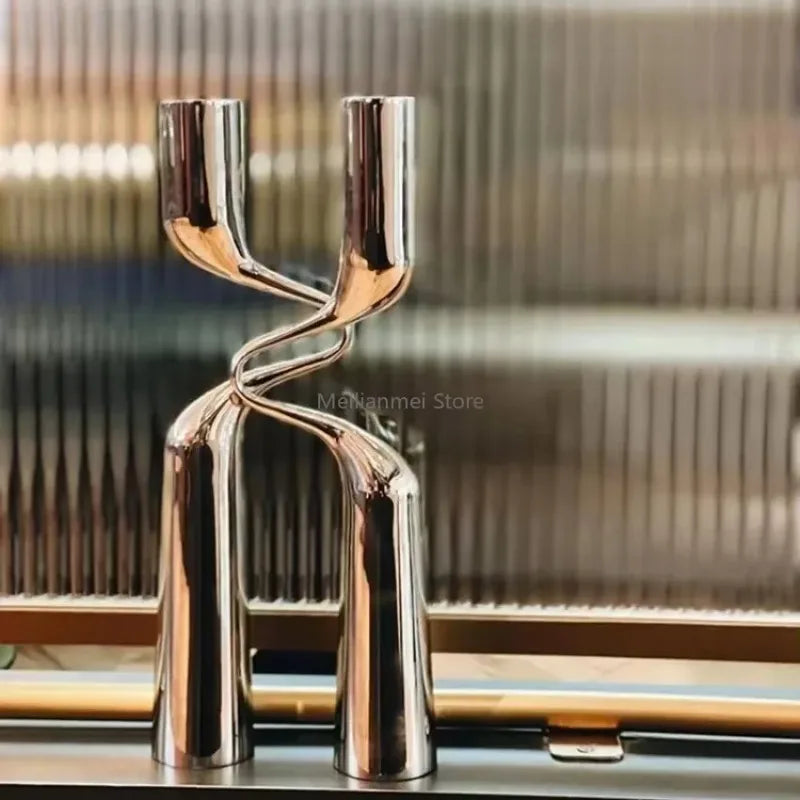 Bougeoir argenté double tête, pièce centrale glamour et raffinée pour salon, maison ou idée cadeau.