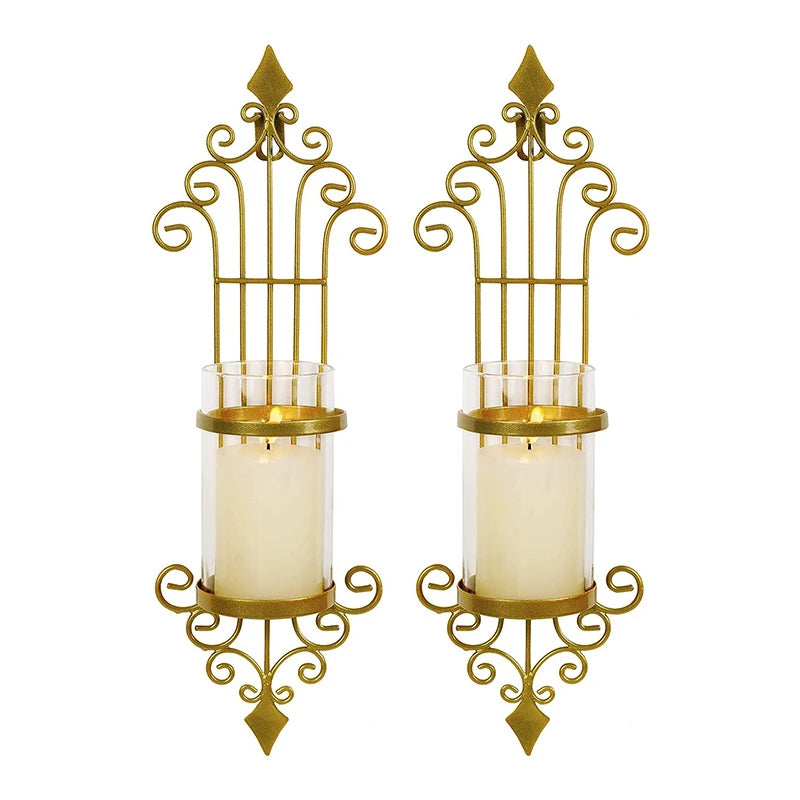 Bougeoir mural en métal et cristal, élégance raffinée pour salon, bar, fête ou décoration de Noël.