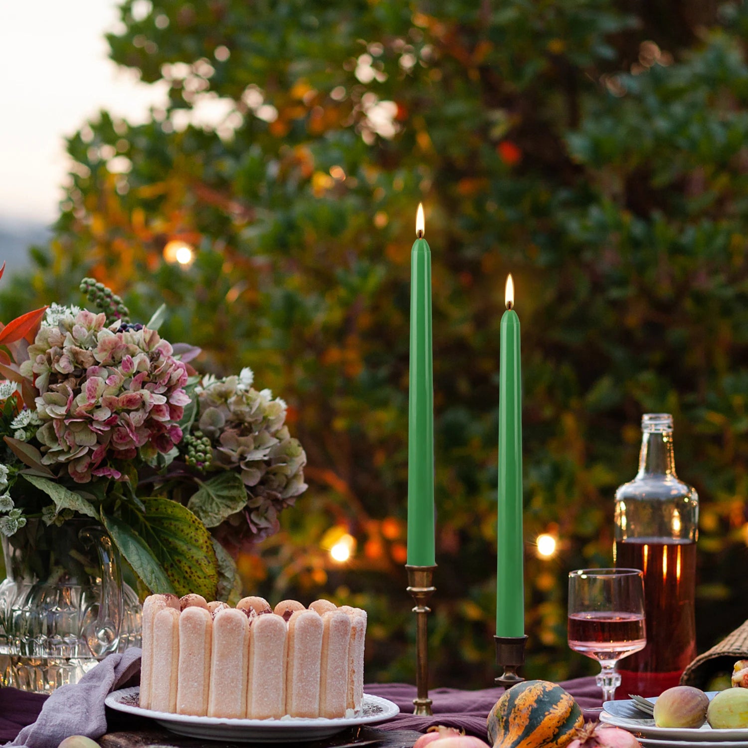 - Haute qualité artisanale : bougies effilées confectionnées avec soin, couleur verte élégante.