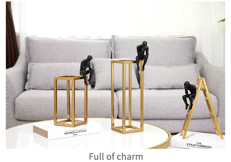 Apportez une touche artistique et raffinée à votre intérieur avec cette sculpture inspirée du Penseur de Rodin. Conçue en métal noir et mise en valeur par un cadre en acier inoxydable, cette petite figurine incarne l’élégance postmoderne. Parfaite comme parure de chambre, objet décoratif de salon ou accent design dans un bureau, elle s’intègre harmonieusement à tout style contemporain.