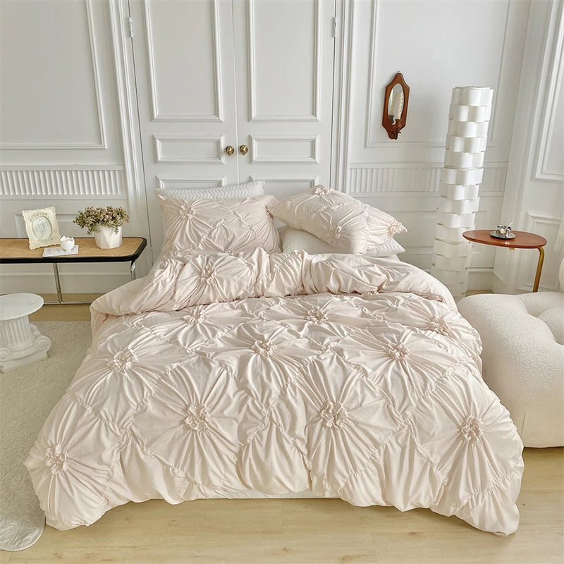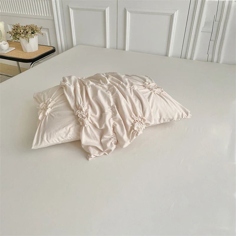 Ajoutez une touche florale sculptée à votre chambre avec cette parure de lit à fleurs 3D torsadées. Artisanat plissé, douceur et élégance pour un sommeil royal.