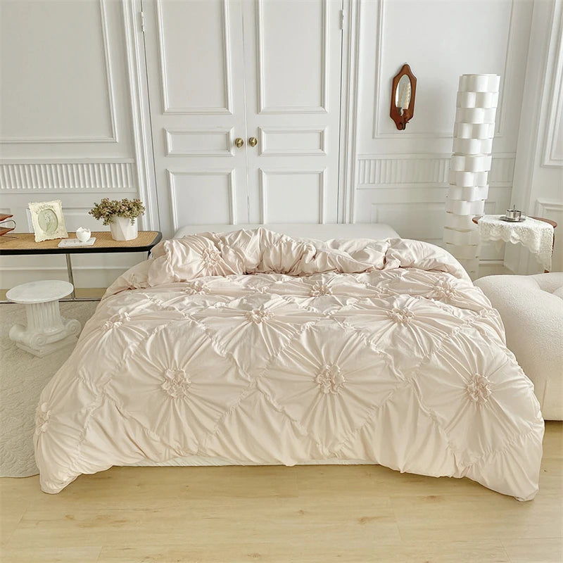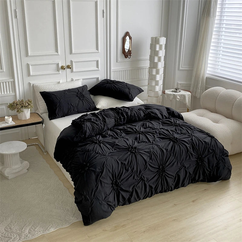 Parure de lit à fleurs 3D torsadées – Housse de couette plissée Queen ou Double, haute qualité