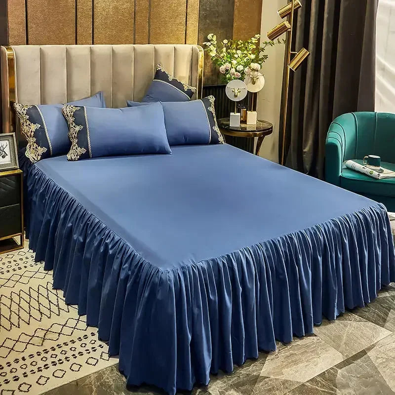 Ensemble de lit 4 pièces – Style européen, jupe de lit à dentelle, version épaisse et finition mate