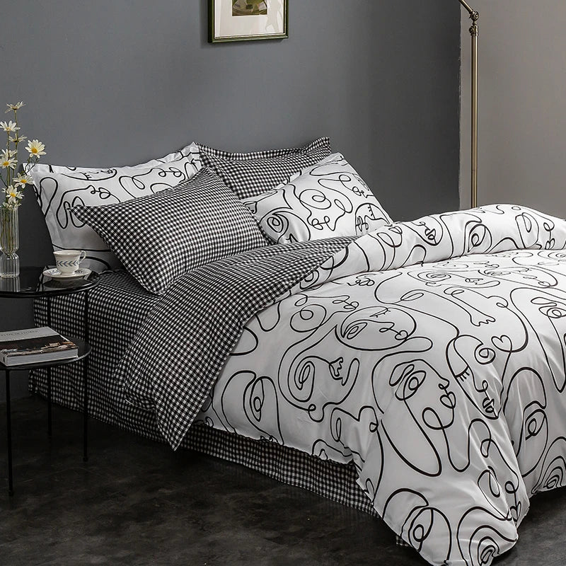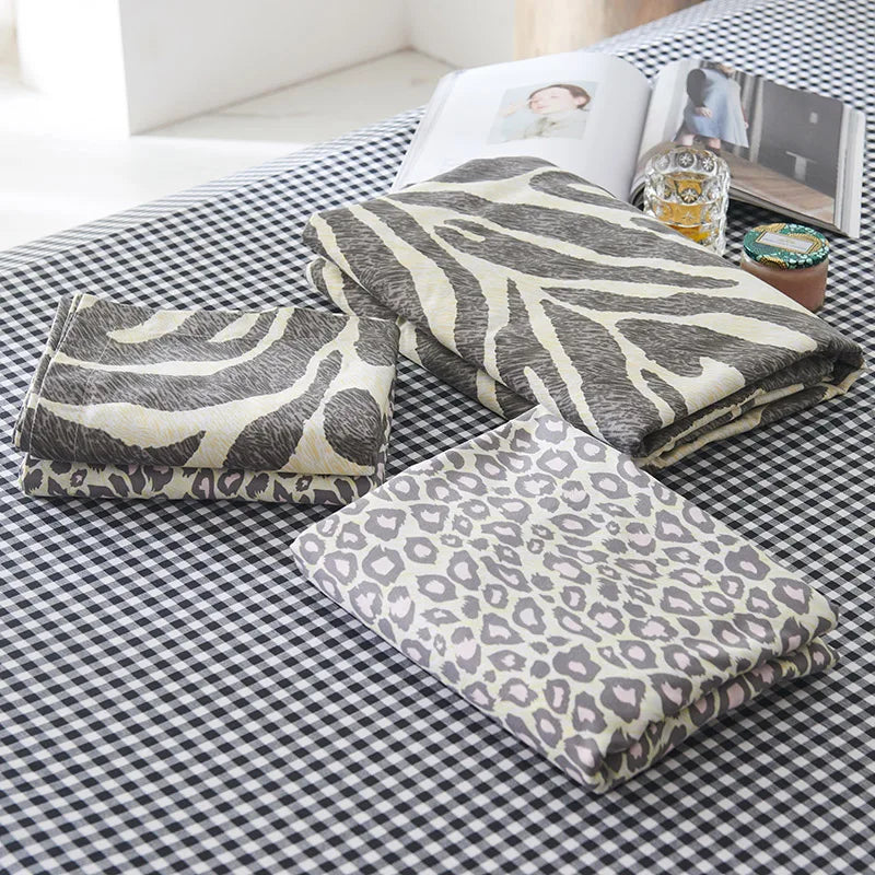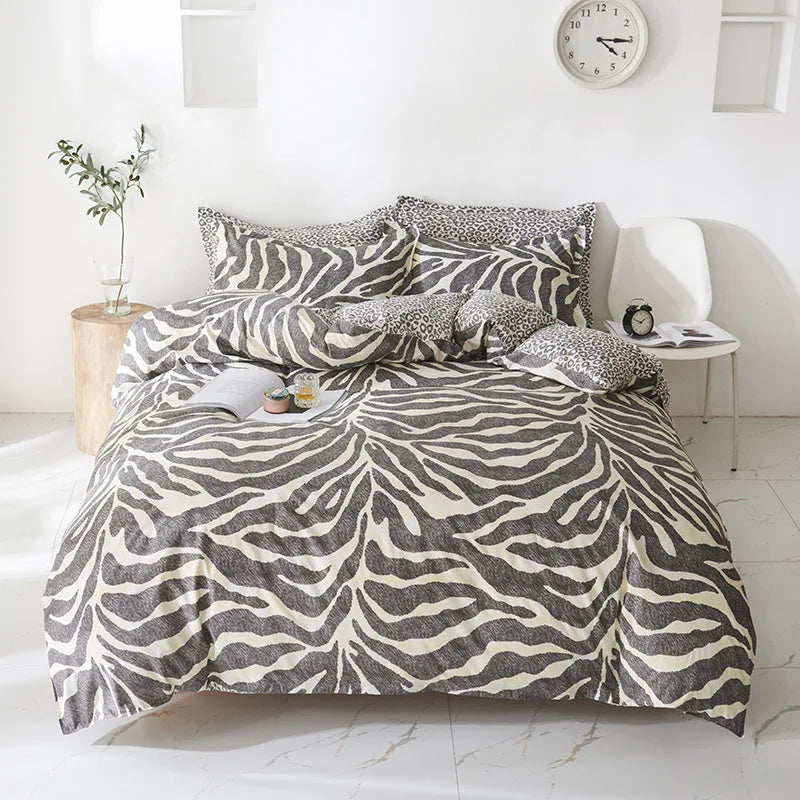 Composée d’une housse de couette et de deux taies d’oreiller assorties, cette literie est disponible en formats Double, Queen et King Size. Le tissu est doux, respirant et respectueux de la peau, idéal pour des nuits confortables et stylées.