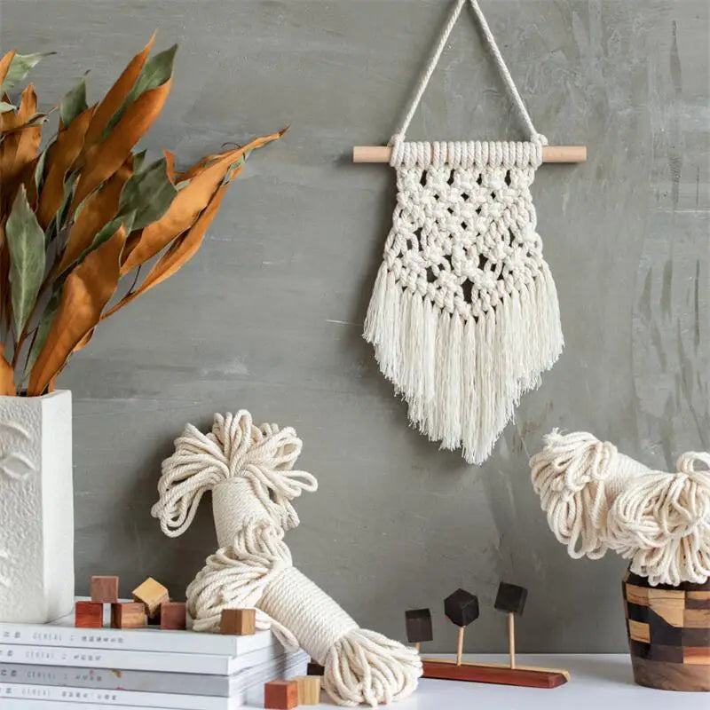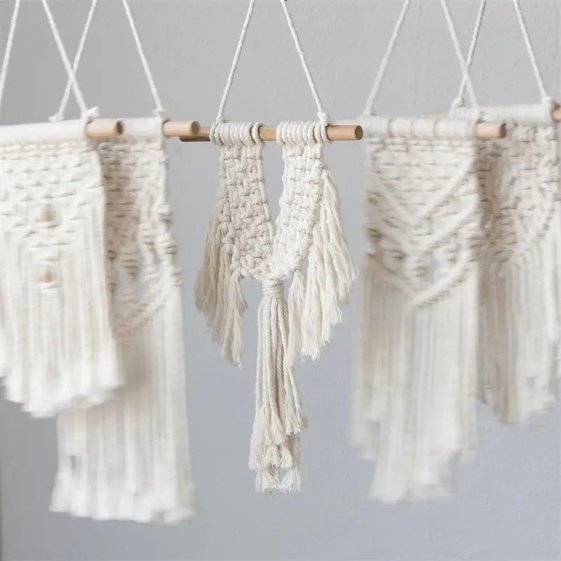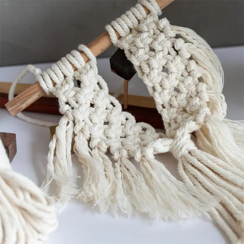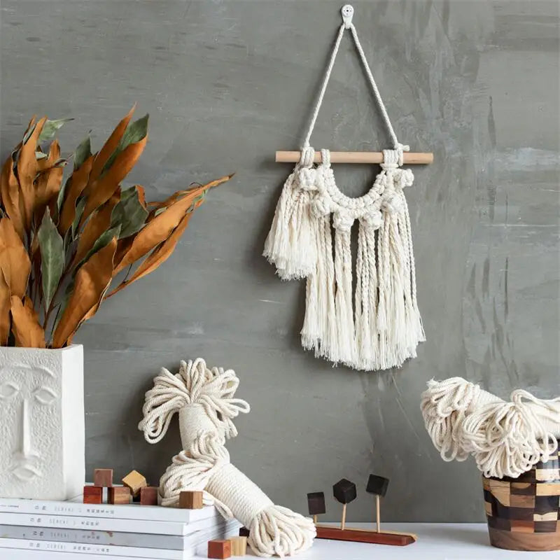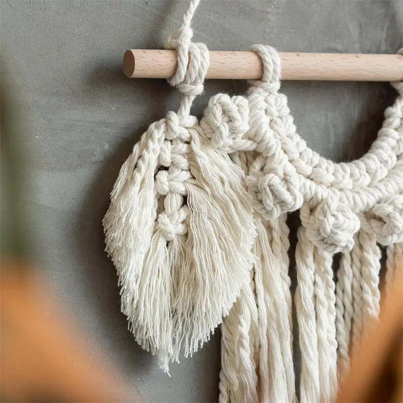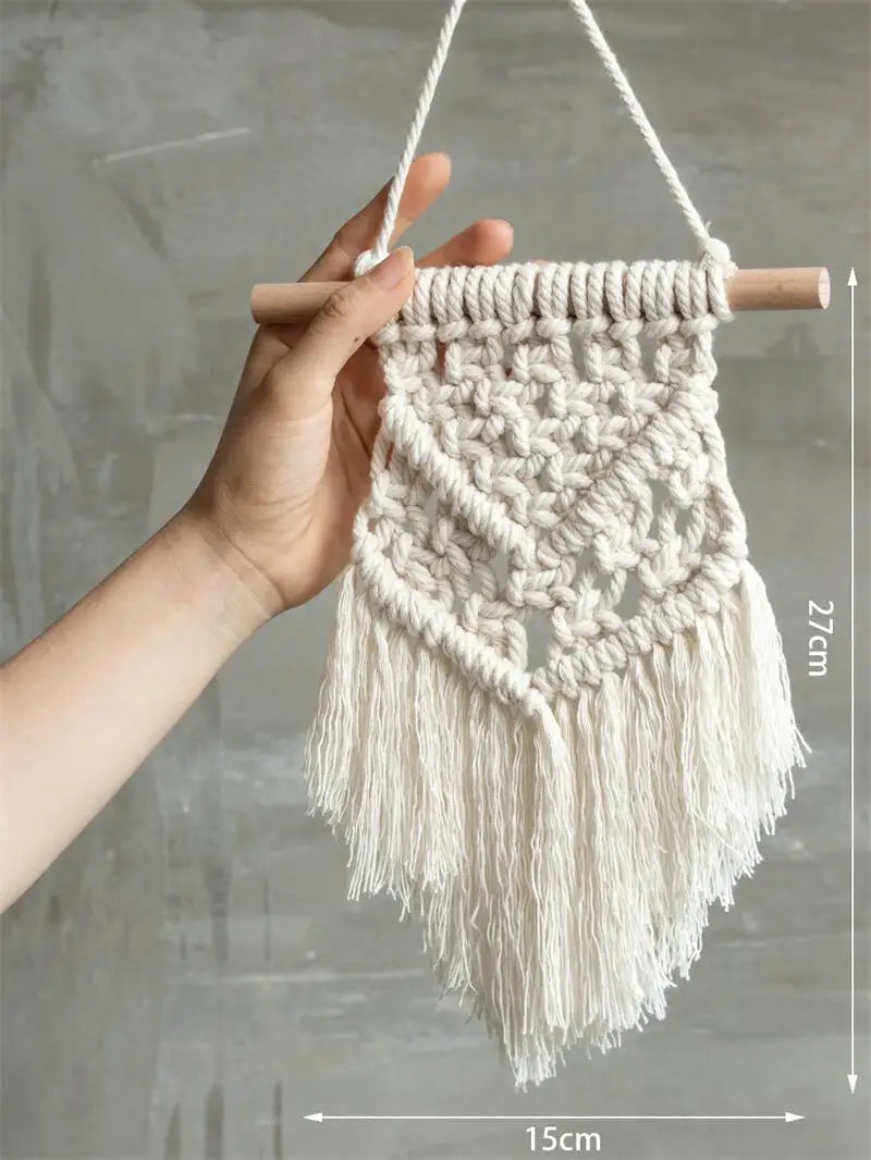 Apportez une note de douceur à votre intérieur avec cette charmante tenture murale en macramé de style nordique. Tissée à la main en coton naturel, elle séduit par sa finesse et sa simplicité. Son format compact en fait la pièce parfaite pour égayer les petits espaces : chambre d'enfant, coin lecture, salon cosy ou entrée. L'alliance du macramé délicat et du design scandinave minimaliste crée une ambiance chaleureuse et apaisante.
