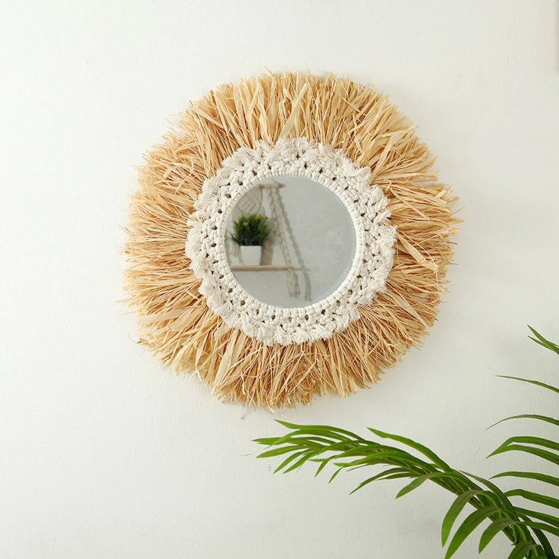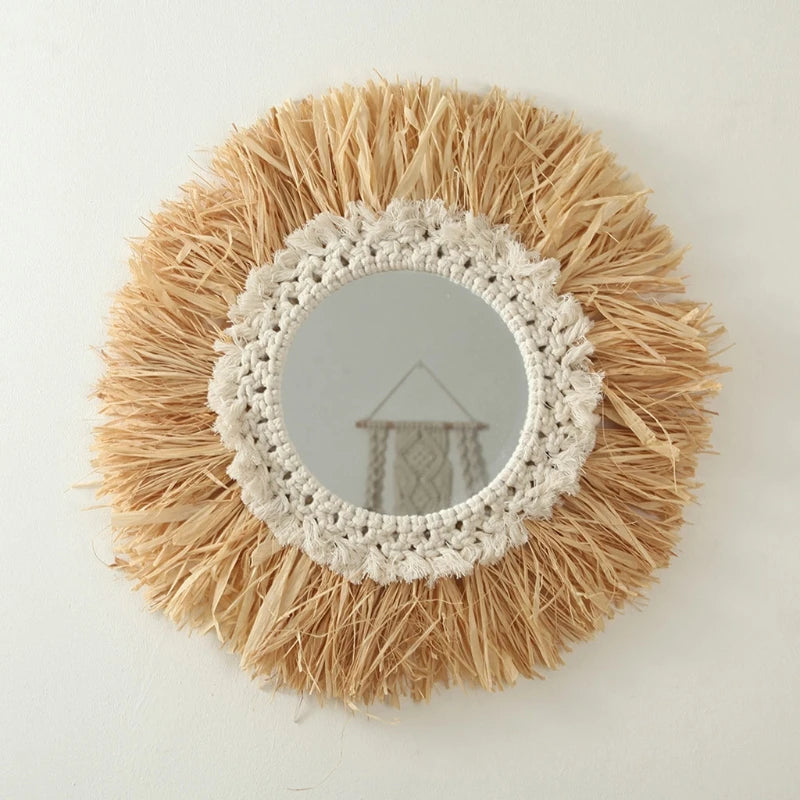 Miroir Mural Suspendu en Corde de Coton Tissée