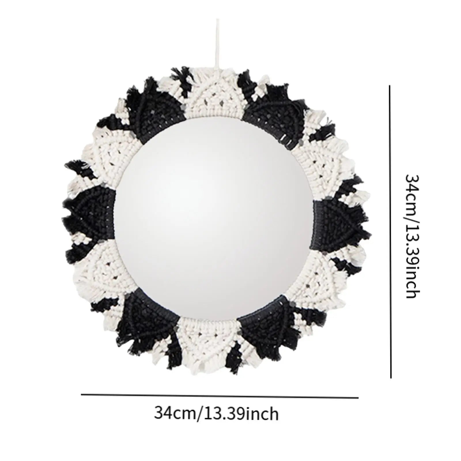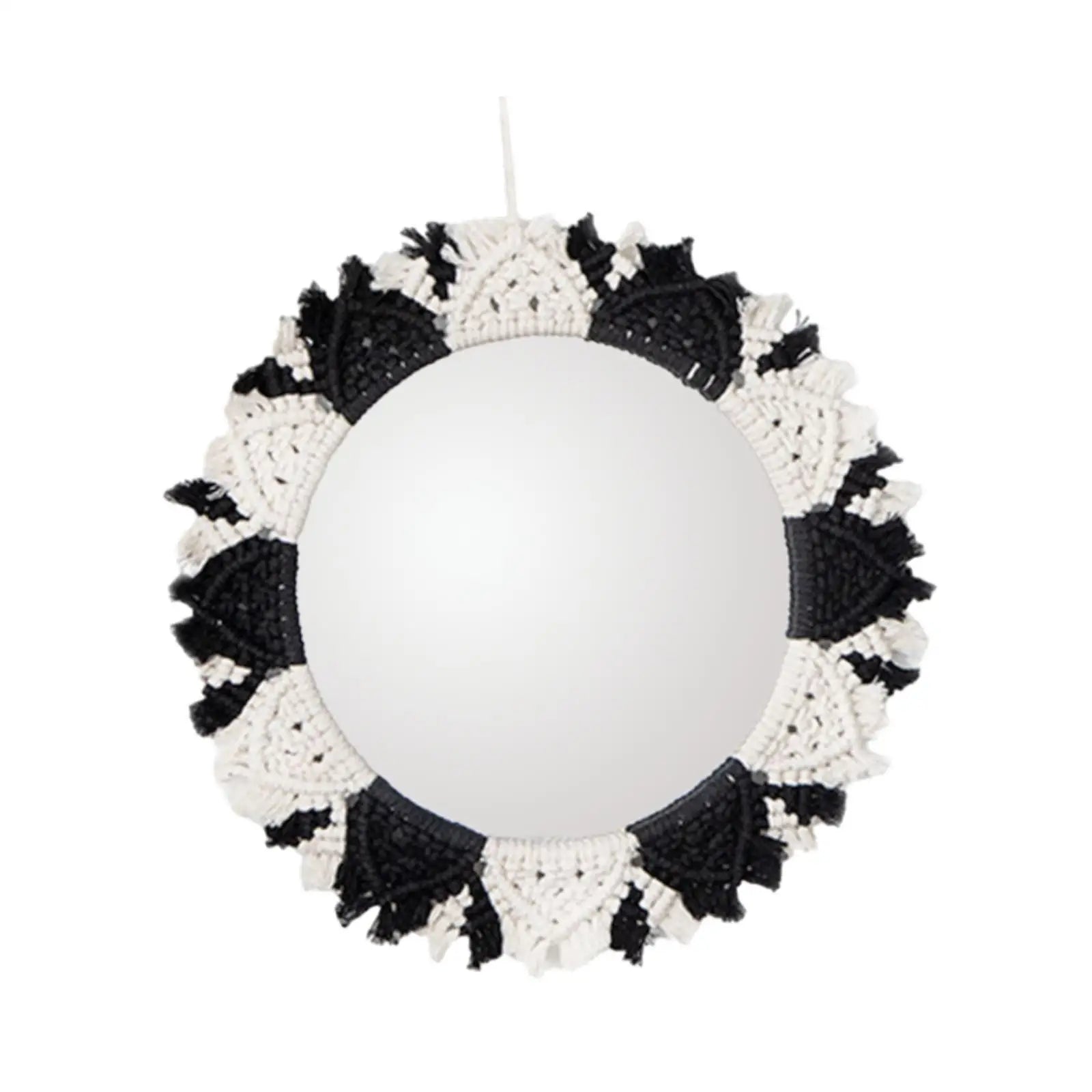 Ce petit miroir mural en macramé est une pièce artisanale qui apporte une touche bohème et chaleureuse à votre intérieur. Tissé à la main avec du coton naturel , il est idéal pour les petits espaces comme une entrée , un bureau , ou un coin lecture . Sa forme ronde et ses franges délicates créent une ambiance douce et apaisante, tout en ajoutant du caractère à votre décoration murale.