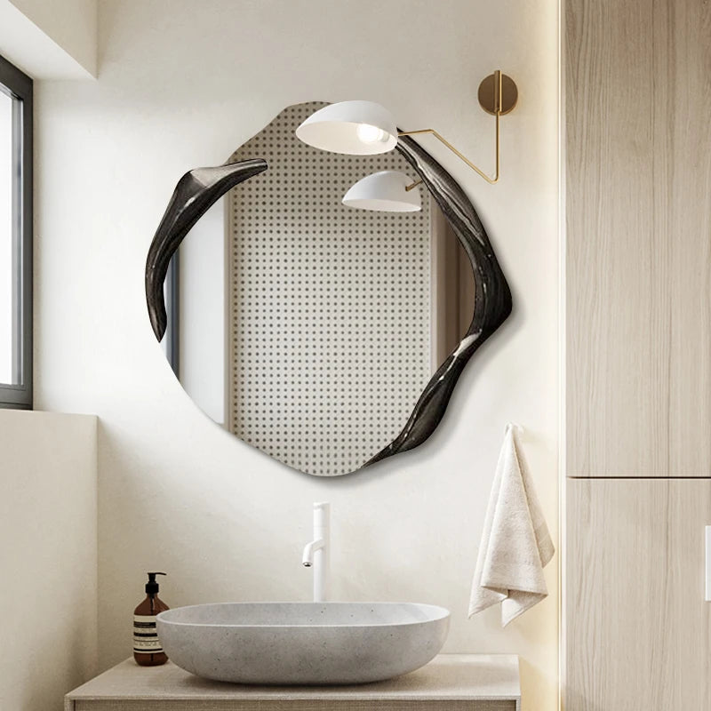 Apportez une touche avant-gardiste à votre décoration intérieure avec ce miroir mural au design irrégulier. Inspiré du style nordique minimaliste et rehaussé d’une allure funky contemporaine, il devient une véritable œuvre d'art au mur. Sa forme asymétrique attire le regard et joue avec la lumière pour agrandir visuellement votre espace. Parfait dans un salon, une entrée ou une chambre, ce miroir allie fonctionnalité et esthétique. Fabriqué avec des matériaux haut de gamme, il offre un reflet net tout en sublimant votre décoration avec audace et raffinement.