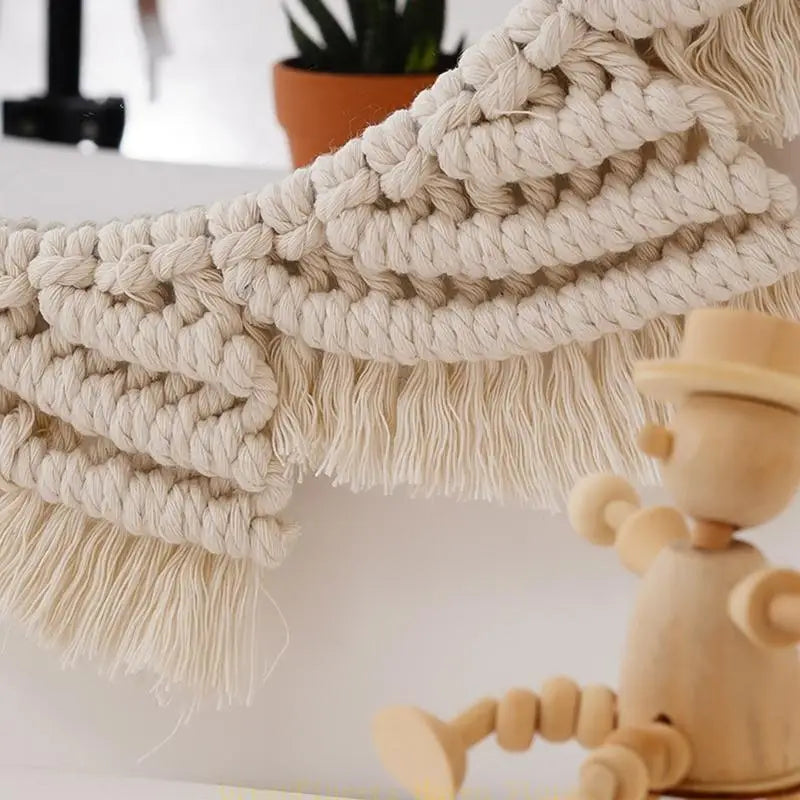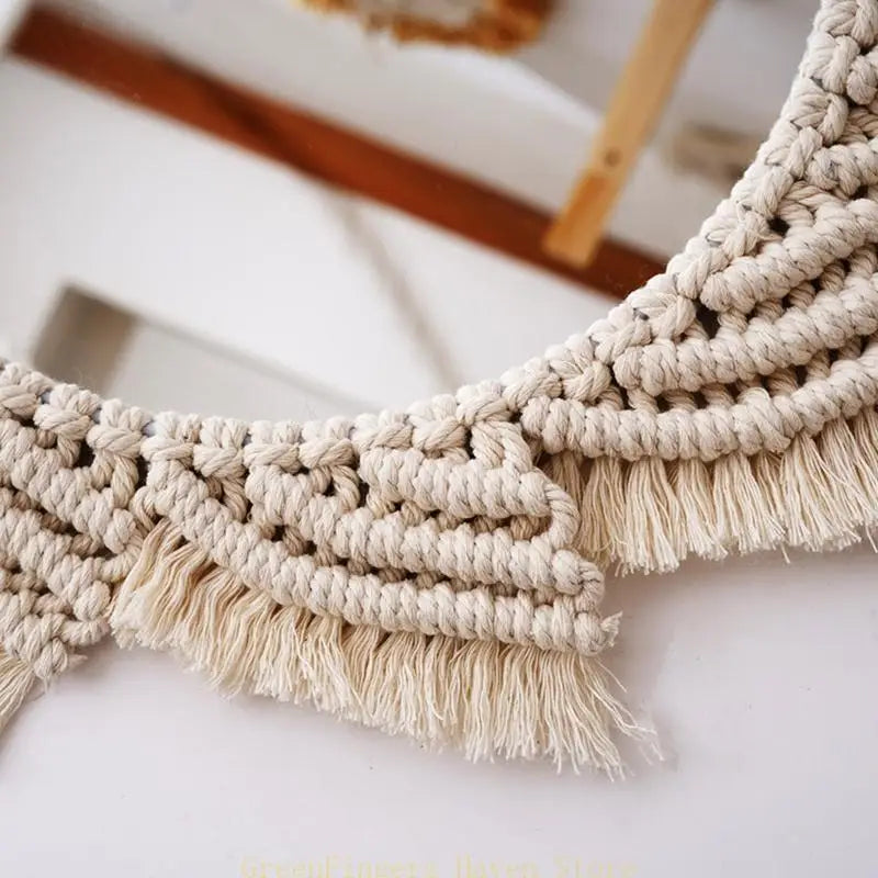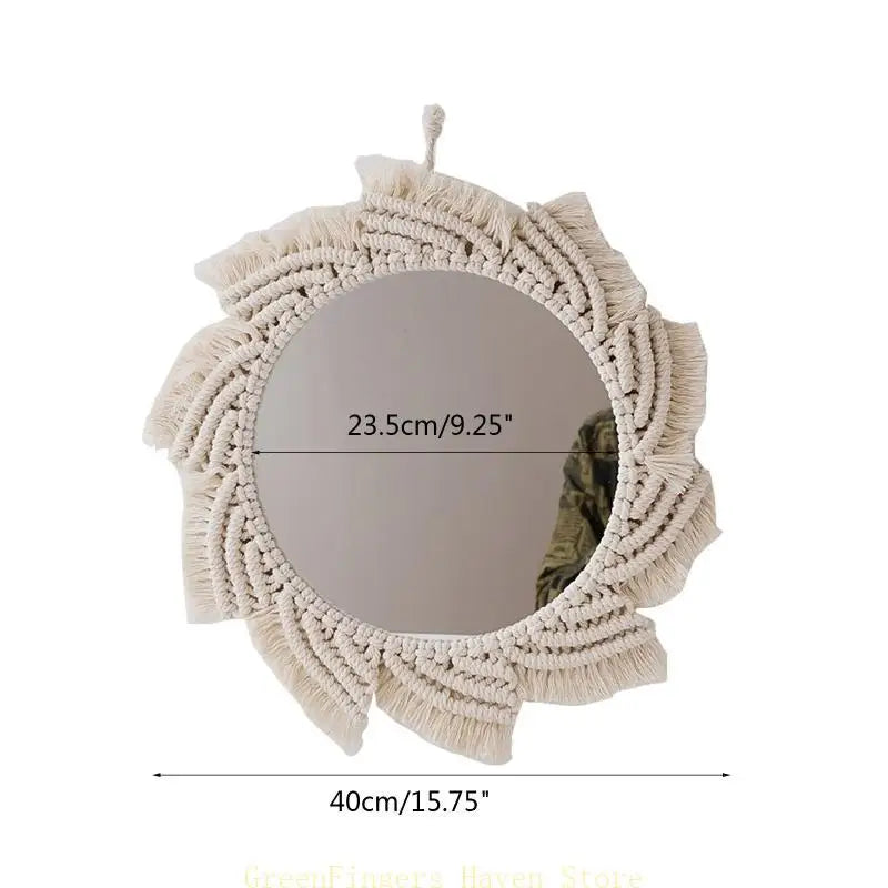 Apportez une touche d'élégance artisanale à votre intérieur avec ce miroir mural rond, suspendu en macramé de style bohème nordique. Tissé à la main avec une corde de coton naturel, il est orné de franges délicates et de pompons décoratifs qui insufflent chaleur et originalité à votre décoration. Parfait pour une chambre, un salon ou un coin lecture, ce miroir mural est à la fois pratique et artistique.