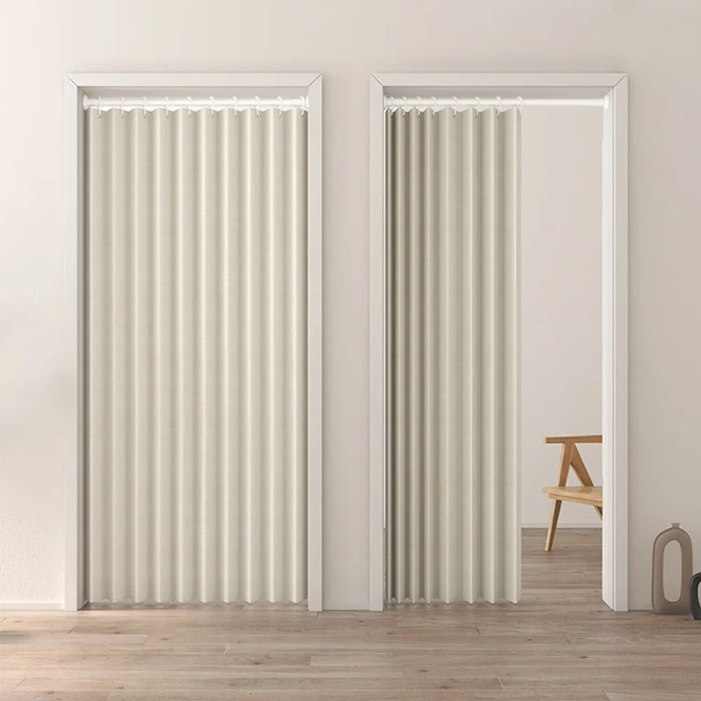 Optimisez votre espace avec ce rideau de porte pliant fixe beige, conçu en tissu ménager résistant. Il fonctionne comme une cloison de séparation pratique, tout en offrant une isolation thermique efficace et une protection contre les courants d'air. Parfait pour structurer une chambre à coucher, un dressing ou un coin bureau, il allie fonctionnalité et style discret.