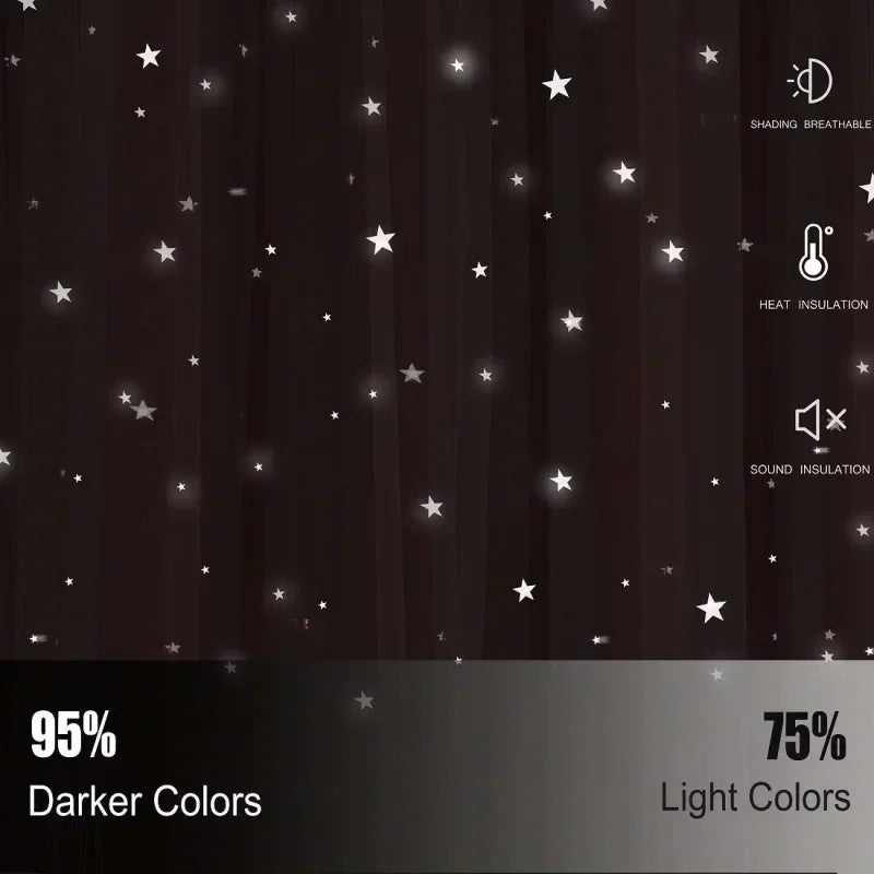 Créez une ambiance féérique et apaisante avec ces rideaux roses occultants à découpes en étoiles , parfaits pour la chambre d'enfant . Ils assurent l' intimité tout en projetant de jolies formes lumineuses. Complétés par les rideaux transparents blancs pastel , ils apportent une légèreté décorative à votre salon , chambre ou espace de vie.