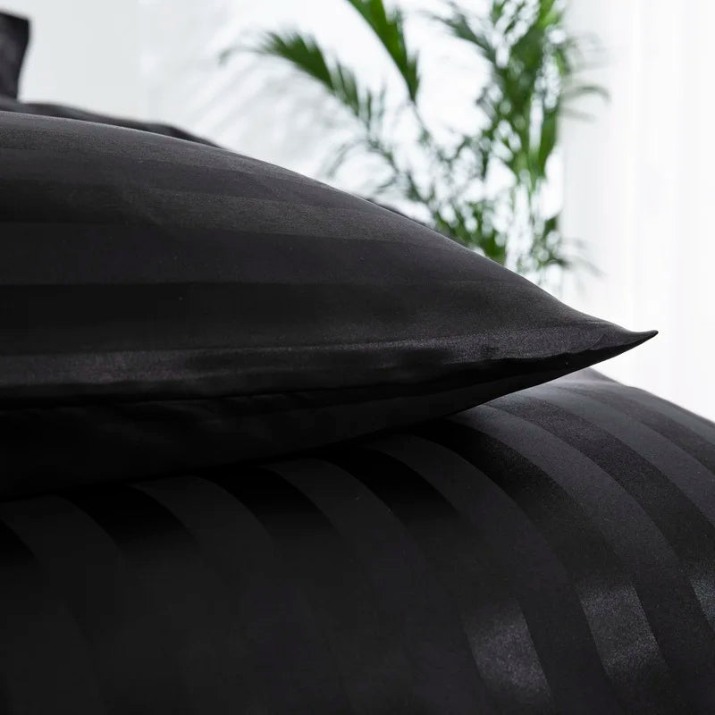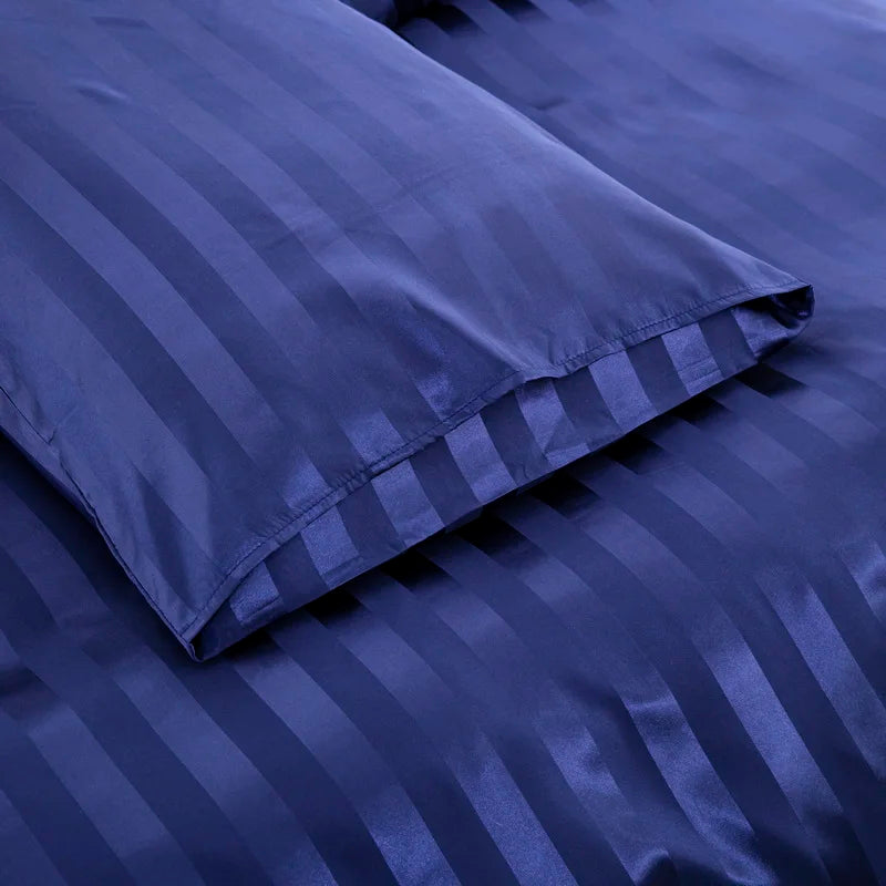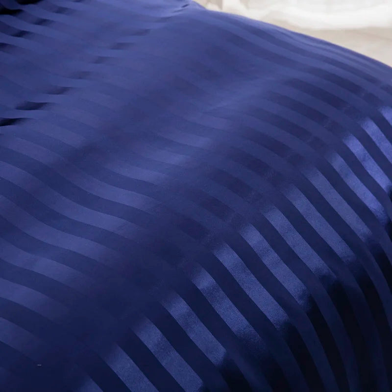 Parure de lit rayée en satin – ensemble complet soyeux, Queen, King, Double, Single