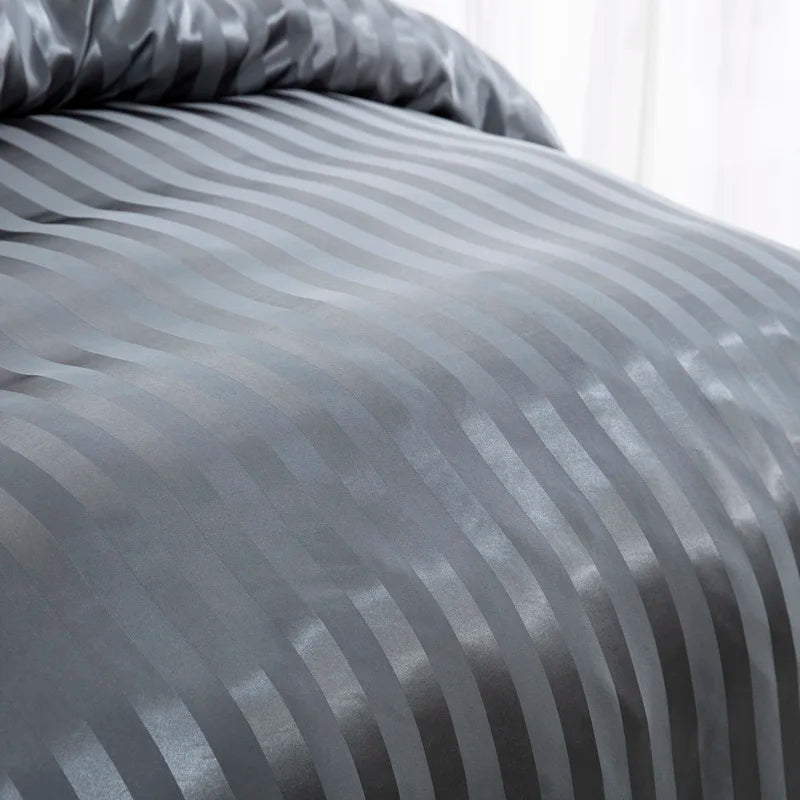 Apportez une touche d’élégance à votre chambre avec notre parure de lit rayée en satin. Douceur soyeuse, finition luxe, disponible en toutes tailles.