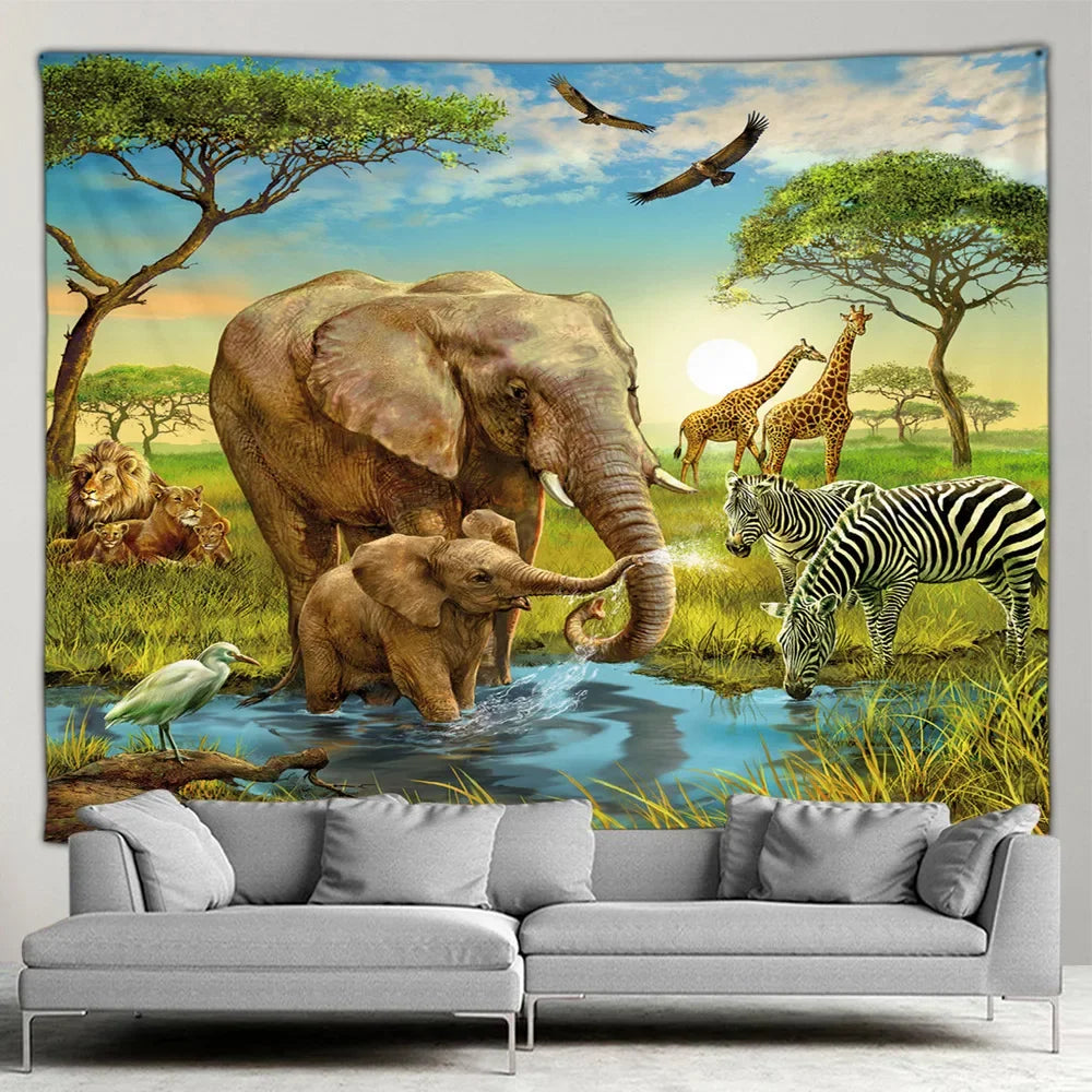 - Tigre, Lion, Éléphant & Cheval – Déco Bohème Grande Chambre -