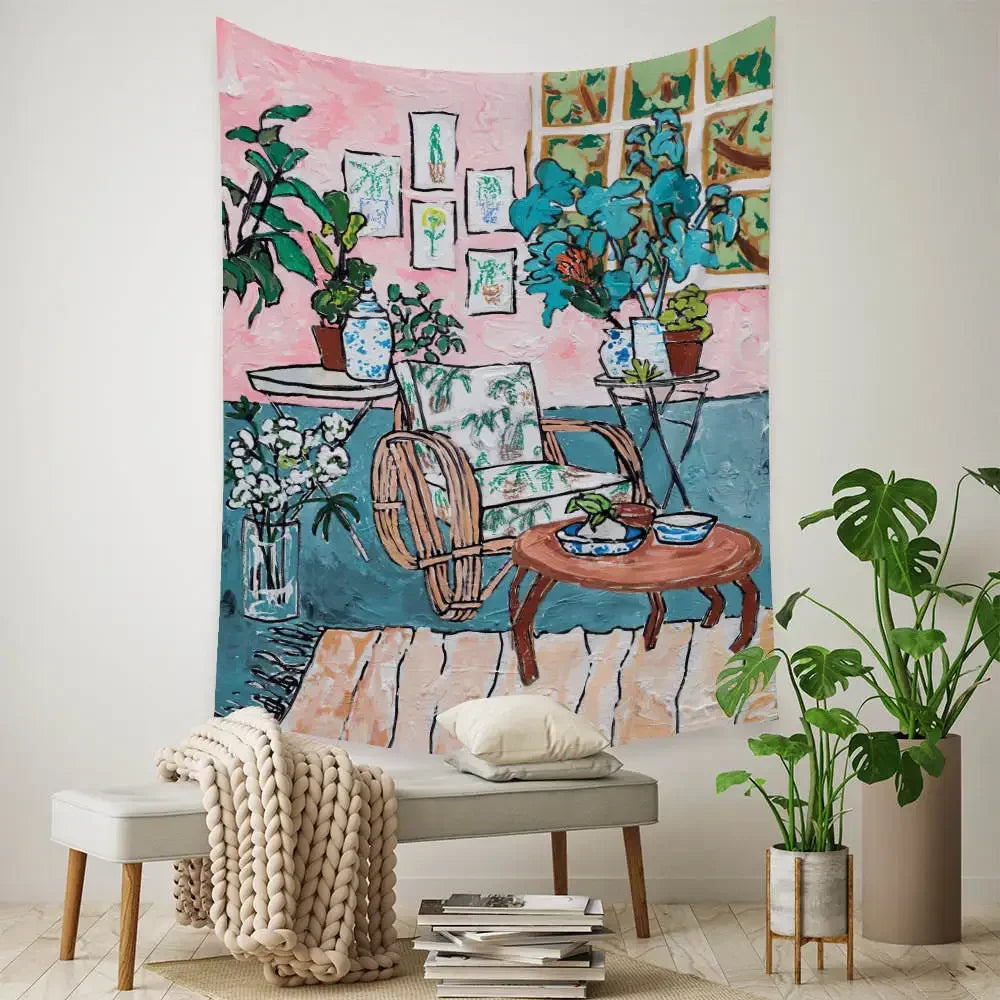 - Tapisserie tissu esthétique – Déco murale suspendue tendance -