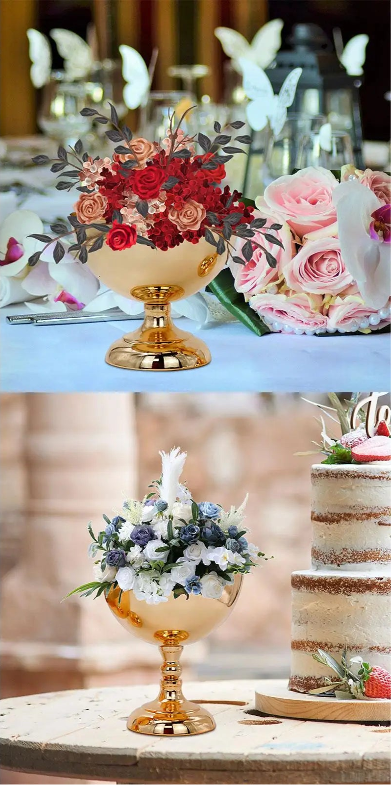 Créez une ambiance sophistiquée et romantique grâce à ce vase à fleurs en métal, idéal pour les centres de table de mariage, les cérémonies élégantes ou les fêtes en intérieur comme en extérieur. Son design raffiné met en valeur chaque arrangement floral et transforme votre décor en un véritable écrin de beauté.
