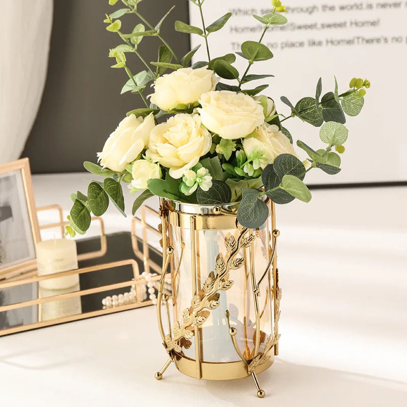 Sublimez vos tables et votre intérieur avec ce vase à fleurs en métal doré et verre, au design européen raffiné. Mariant structure métallique élégante et verre délicat, ce vase apporte une ambiance luxueuse et romantique à chaque espace. Parfait pour une décoration de mariage, de Noël, une table à manger festive, ou un salon sophistiqué, il devient une pièce maîtresse à lui seul.